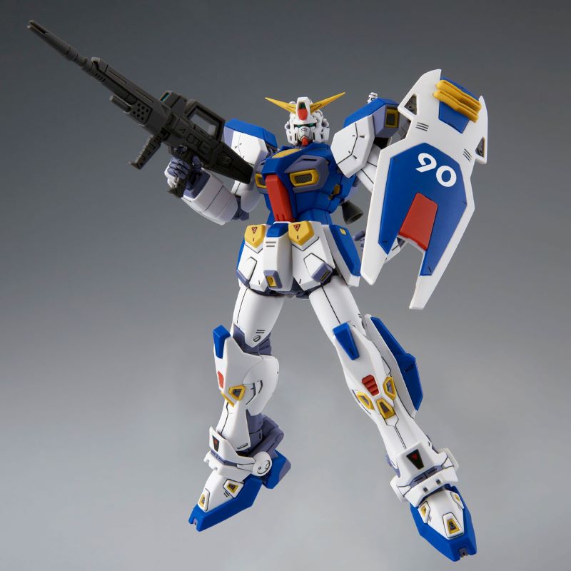 Includes F90-exclusive beam rifle, shield, and beam saber. The beam rifle’s energy pack is detachable and can be attached inside the shield.